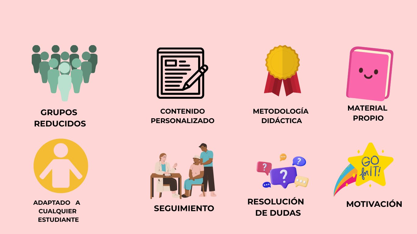 Clases personalizadas  ,  método didáctico y  grupos reducidos  .